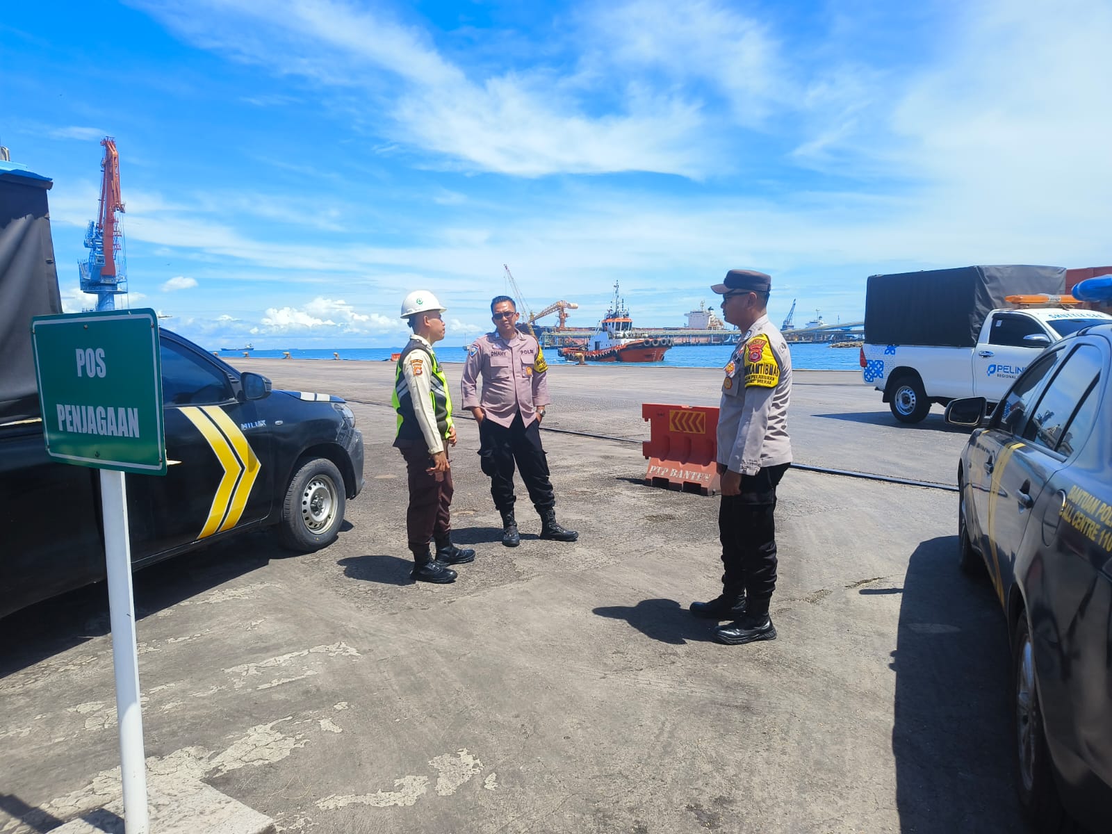 Kapolres Cilegon Polda Banten AKBP Martua Raja Taripar Laut Melalui Kapolsek Kskp Banten Polres Cilegon Polda Banten Iptu Bobi Nainggolan Mengatakan Personil Polsek Kskp Banten Rutin menyambangi anggota Security dan memberikan himbauan agar para anggota Security bisa melaksanakan tugas menjaga keamanan di lingkungan Kawasan Pelabuhan.